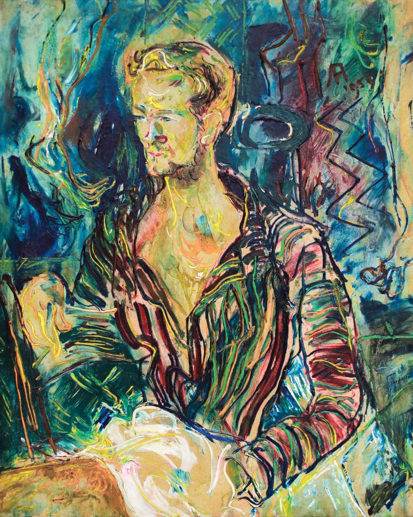 In this auction, we have several Affandi’s pieces, such as Earl of Glynn (1959) and Dancer (1965). In Earl of Glynn, this painting captures the essence of an English nobleman through Affandi’s signature spontaneous style. Seated in a relaxed yet commanding pose, the nobleman gazes to the right, dressed in a striped green, red, and black ensemble. His focused expression and detailed features, such as eyes, nose, mouth, hair, and beard, are brought to life with bold, textured strokes applied directly from the tube, exemplifying Affandi’s instinctive approach.